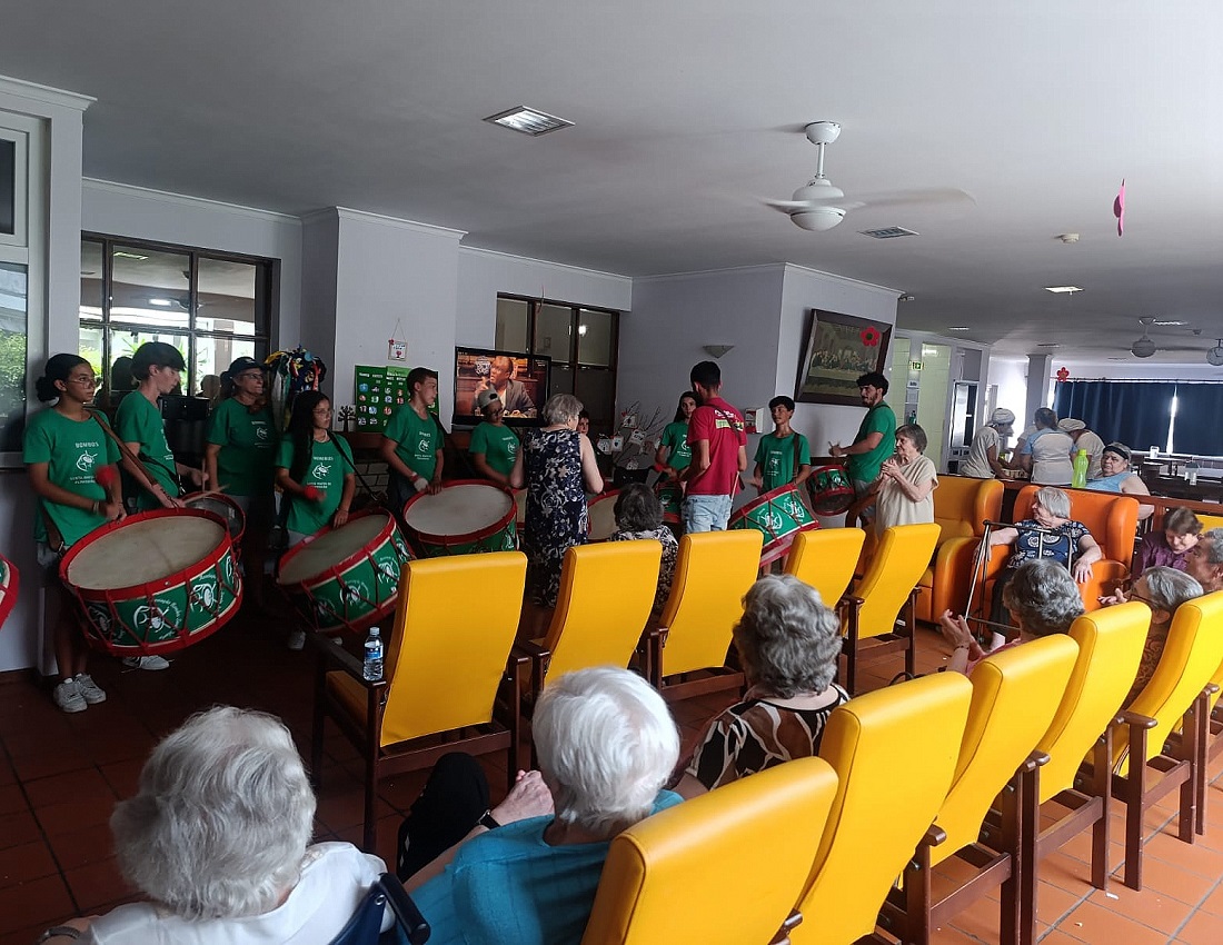 Nesse mesmo dia, e também no âmbito da celebração das festas municipais, a ERPI recebeu a visita do Grupo de Bombos de Santa Marta de Penaguião, espalhando alegria, ritmo e sorrisos entre todos. Para fechar este dia tão especial de uma forma doce, os idosos desfrutaram de um também especial lanche constituído pelas famosas farturas!